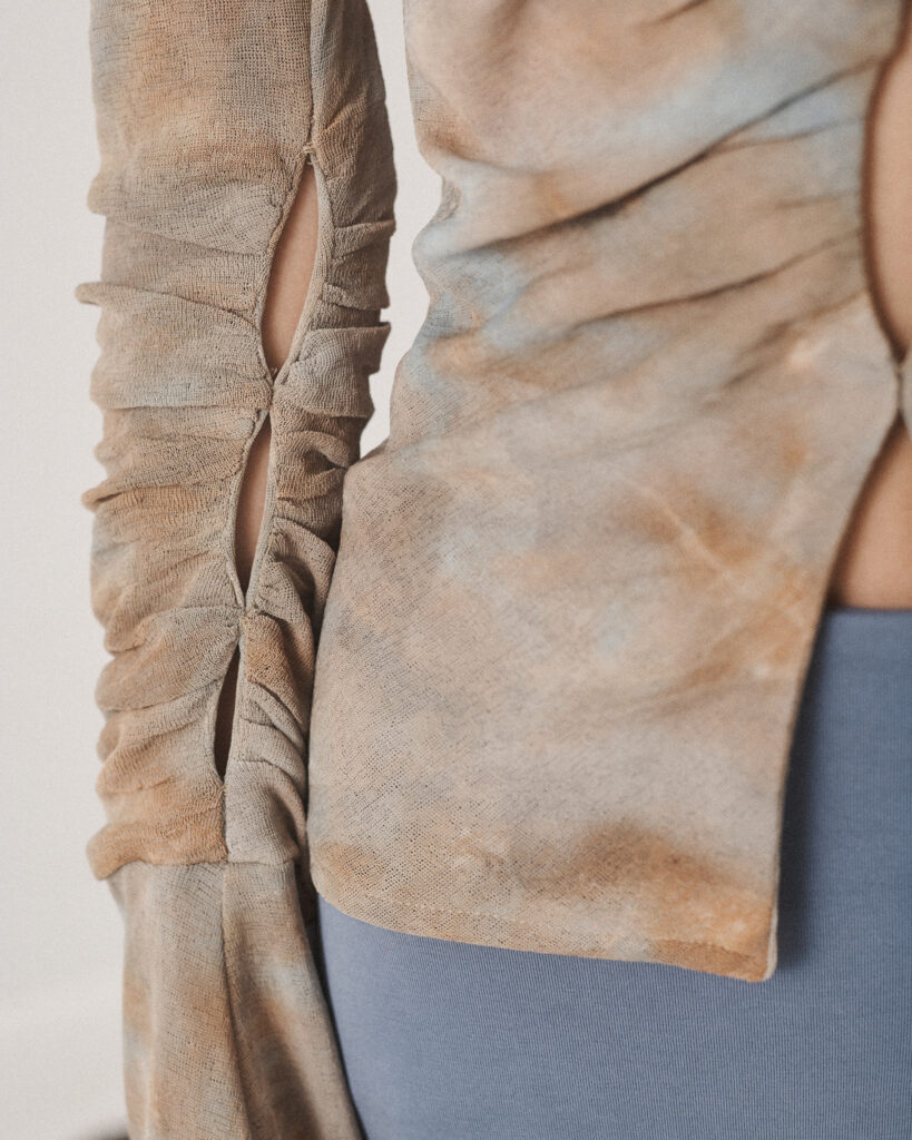 Dead-stock polyester fabric promotes sustainability by reducing waste, conserving resources, and repurposing surplus materials, minimising the need for new production. Crafted by local artisans in Greece, this process not only supports ethical labor but also reduces the carbon footprint associated with long-distance manufacturing.